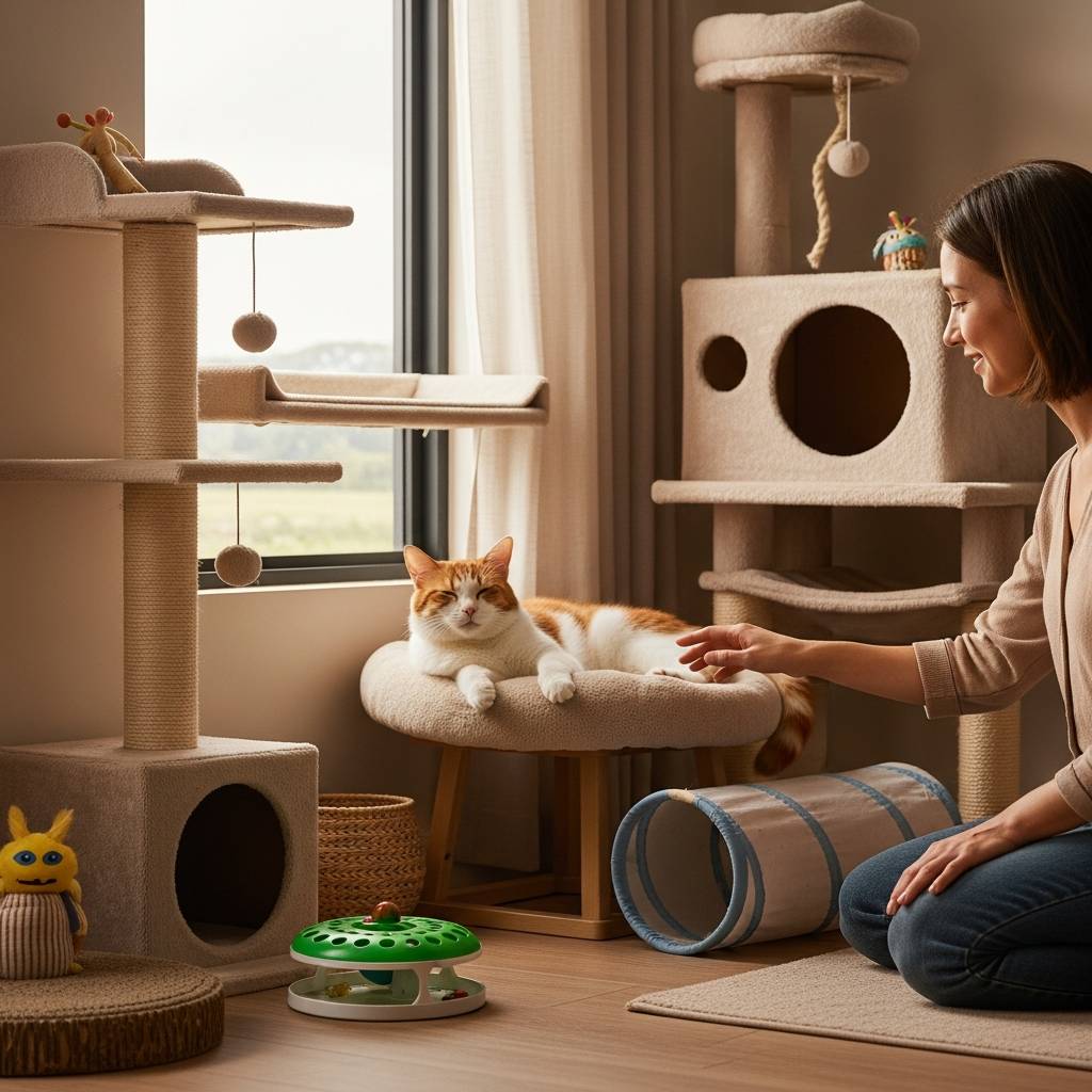 まず重要なのが「高さのある空間」の確保です。キャットタワーや棚の設置は単なる遊び道具ではありません。高い場所から周囲を見渡せることは、猫に安心感を与える重要な要素です。窓際に棚を設置すれば、外の様子を観察することもでき、猫の知的好奇心も満たされます。