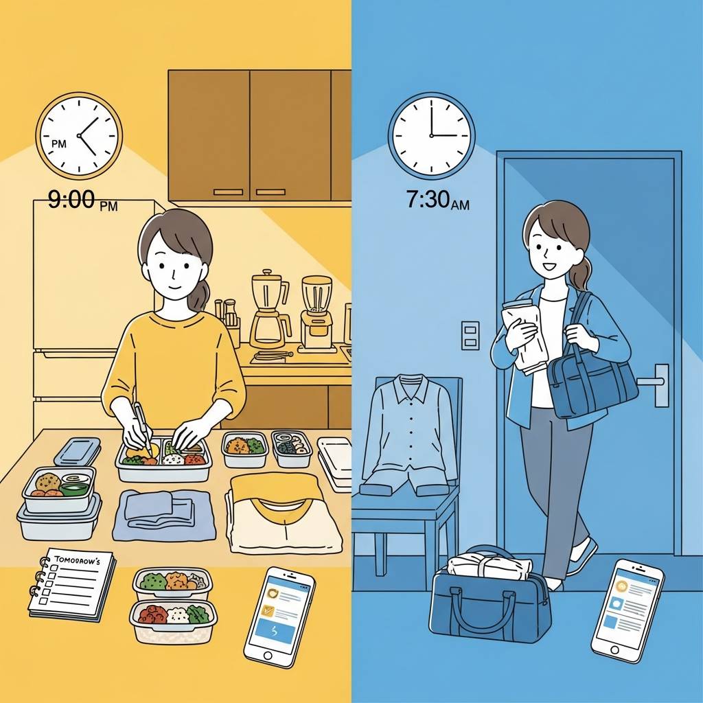 実は、朝の混乱を解消するカギは「前日の夜にある」ことをご存知でしょうか。たった15分の夜の準備が、翌朝のあなたの時間とメンタルを大きく変えるのです。