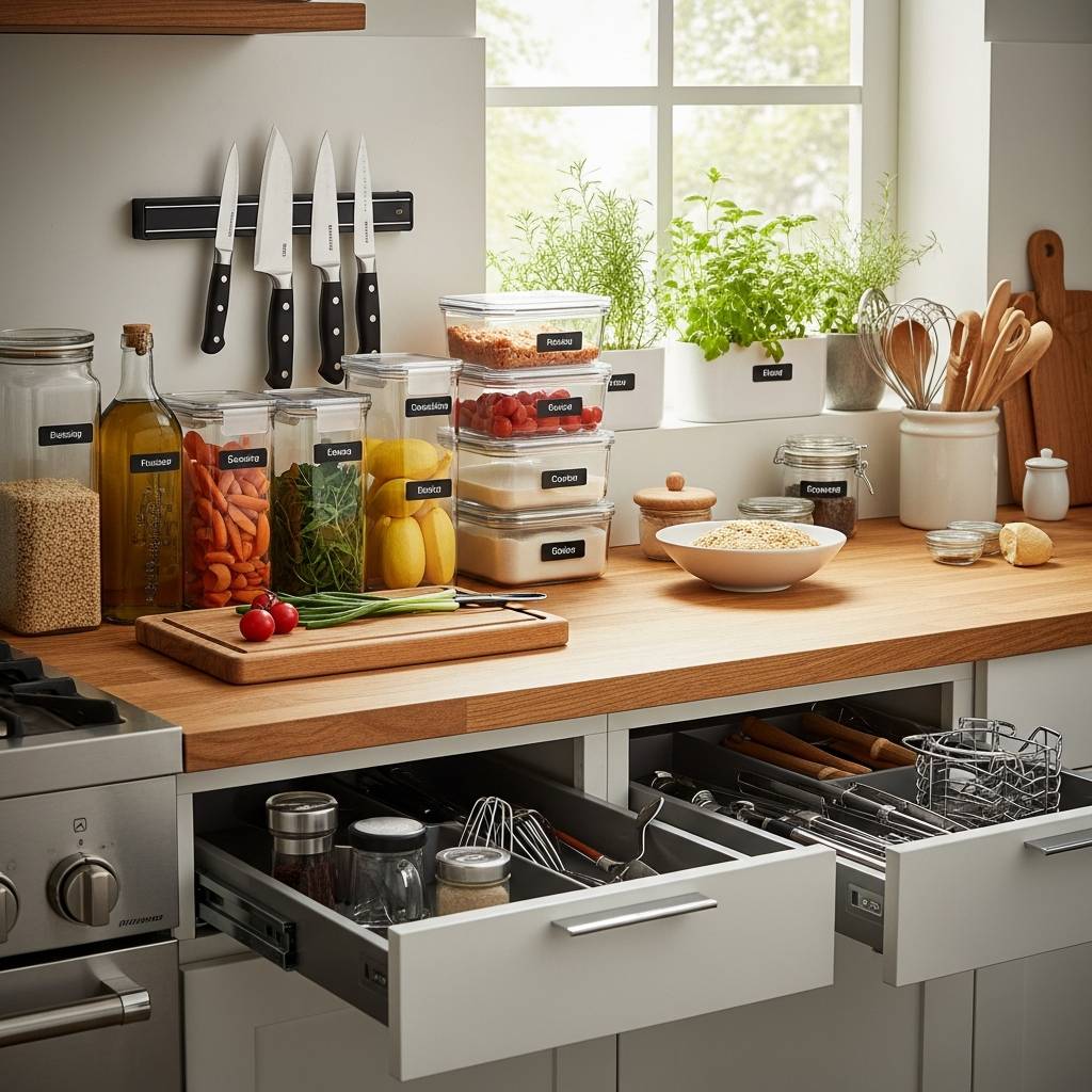 収納グッズの活用も欠かせません。引き出し式収納、仕切りトレー、ラベリングなどを駆使して、一目で何がどこにあるか分かるようにしましょう。「一つひとつの小さな工夫が、毎日の料理時間を劇的に短縮する」と多くのシェフが口を揃えます。
