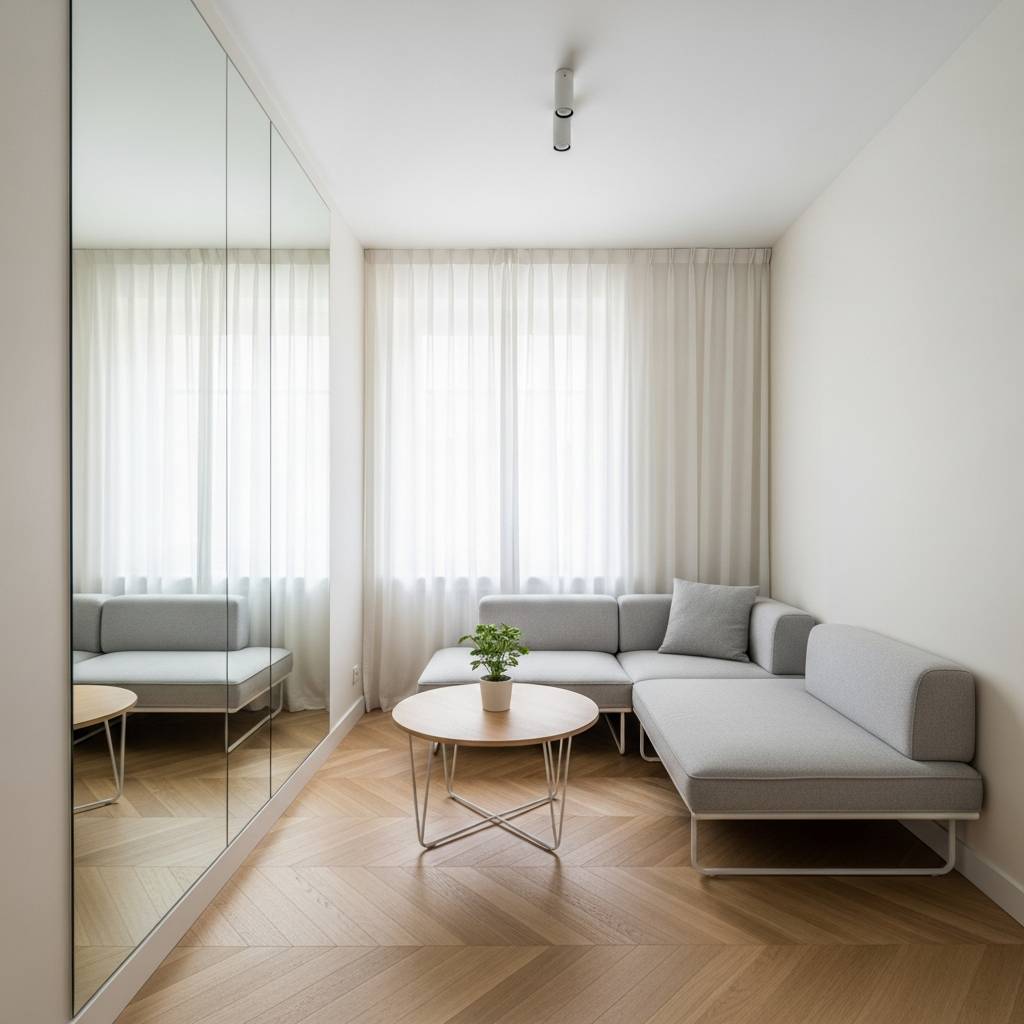 部屋の狭さを解消するために、必ずしも家具を減らす必要はありません。インテリアコーディネーターなどのプロが現場で多用する、視覚的なトリックを取り入れるだけで、空間の印象は劇的に変わります。その鍵を握るアイテムが「大型ミラー」と「間接照明」です。