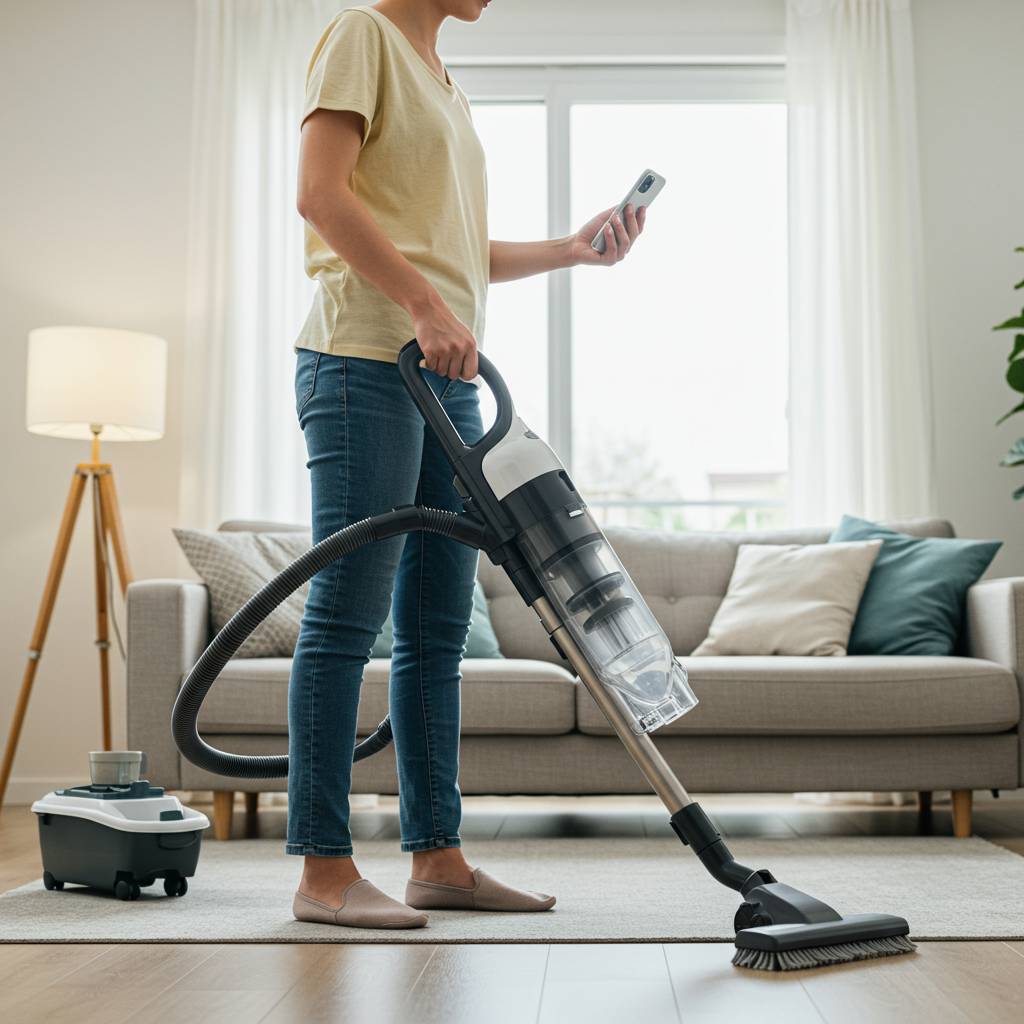 まず取り入れたいのが「立ち時間の活用」です。動画を見ながら立っている時間、例えばYouTubeを視聴しながらハンディモップで床を軽く拭いたり、ニュース記事を読みながらホコリを払ったりすることができます。特に集中力を必要としない単純作業は、スマホ操作と並行して行えるため効率的です。